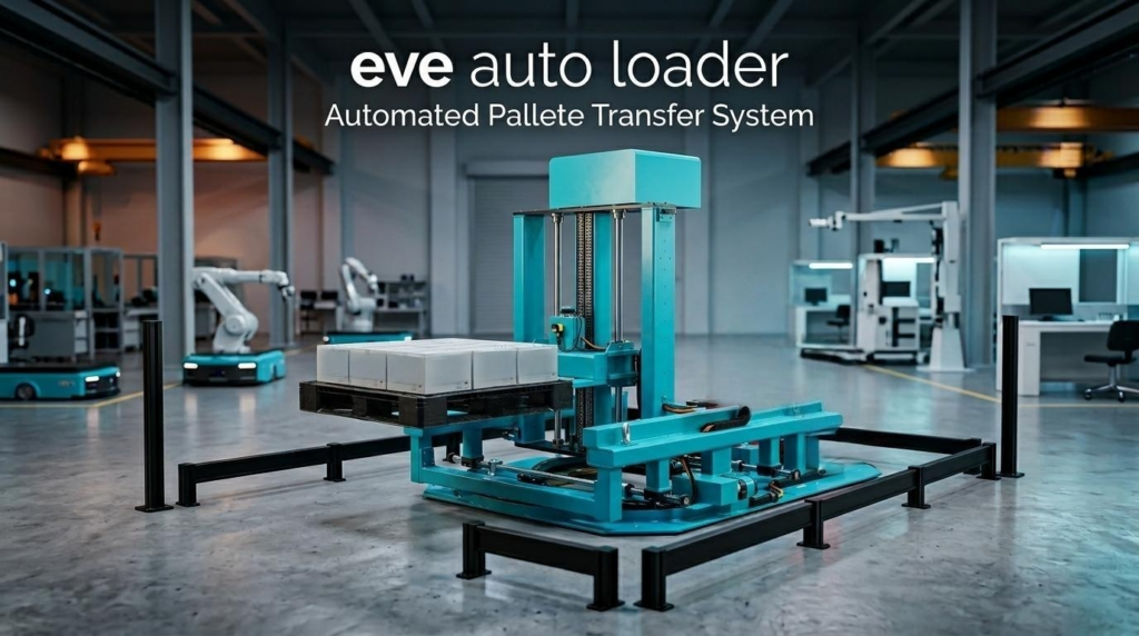 eve autoが搬送したパレットを所定位置へ自動移載。